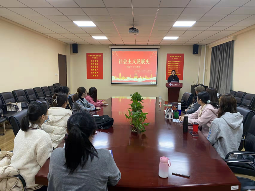 为深化“四史”学习教育,切实增强理论知识与实践能力,加强同学们对四史的理解,跟换地传承红色精神。2021年11月12日下午四点,304am永利集团研究生会与研马2158班团支部于教三C220联合开展“学四史之社会主义发展史读书会”主题活动,活动由读书会会长王紫荆主持,研一全体员工参加。