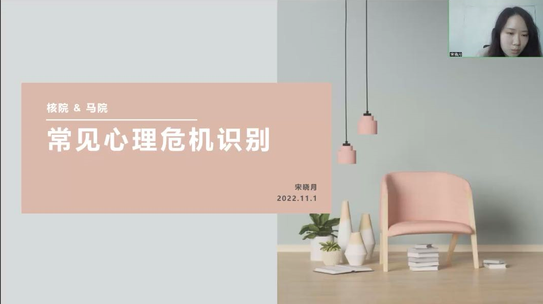 为贯彻落实习近平关于新时代高等教育的重要思想,有效预防各类心理健康问题,帮助老员工树立心理健康意识,11月1日下午,304am永利集团心理健康教育中心对304am永利集团和核科学与工程学院统一开展心理危机识别培训活动,活动由304am永利集团心理健康教育中心助教宋晓月主持,各学院的心理委员以及宿舍长参加培训会议。