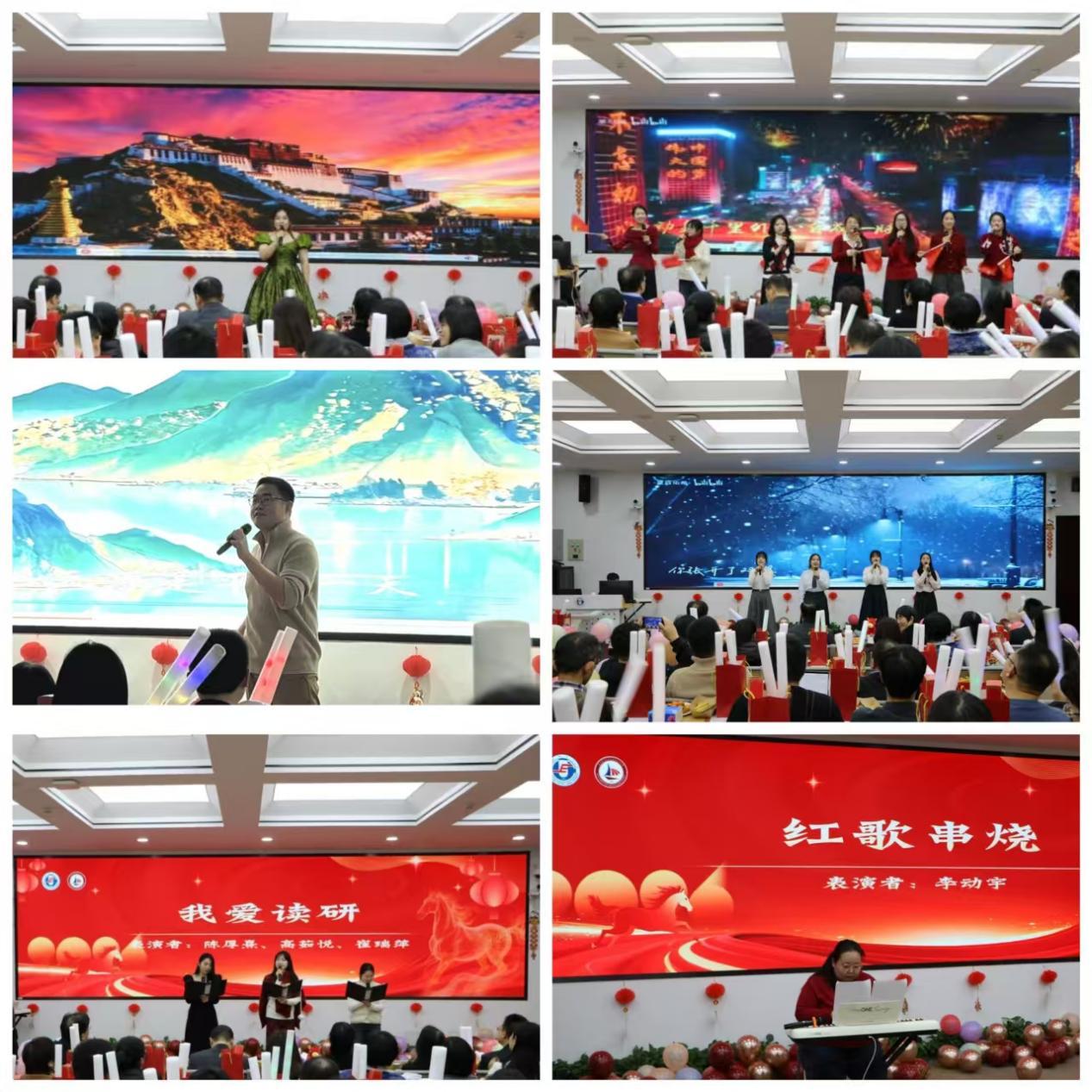 联欢活动在一段凝聚学院2025年发展足迹的回顾视频拉开帷幕。开场曲《灯火里的中国》勾勒家国图景,彰显马院人家国情怀;器乐《红歌串烧》让经典旋律焕新,传递信仰力量。创意诗朗诵《我爱读研》幽默演绎研究生治学日常;《小幸运》诉说马院大家庭的相聚温情;张心雨、田宇老师联袂演唱的《上春山》,以明快旋律增添清新雅致。情景剧《矿工故事》讲述华人矿工坚守抗争的历史,激发青年对时代使命的思考;《候鸟》触动逐梦学子的家国情愫,引发共鸣;《高雅企鹅舞》以俏皮舞姿注入青春活力;《我们都是追梦人》唱响学子逐梦的坚定信念。展演在大合唱《相亲相爱》中推向高潮,激昂的歌声凝聚起马院人同心筑梦的深厚情谊,为整场活动画上圆满句号。