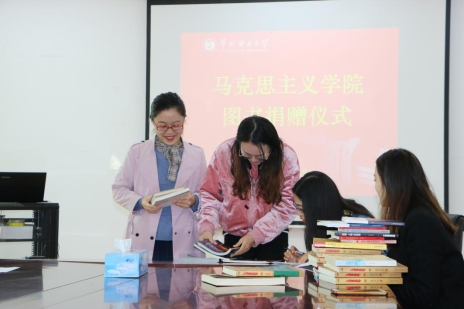 然后,同学们依次进行签名赠书,学术部成员将同学们带来的捐赠图书进行分类登记,“好书伴成长”活动捐书仪式至此圆满结束。