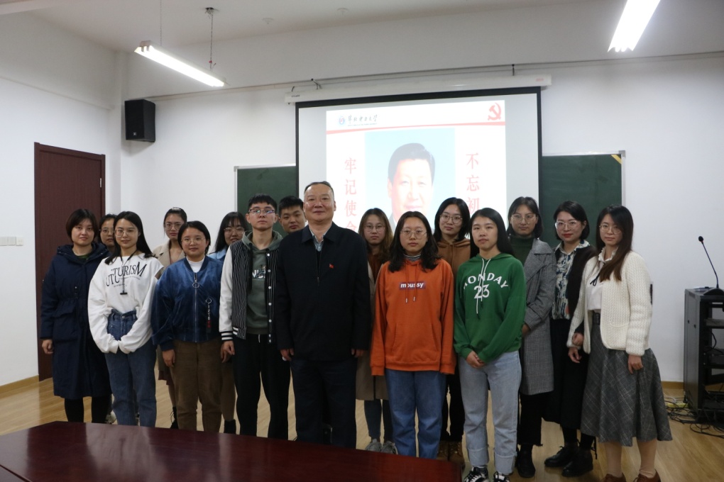 首先蔡书记向大家介绍此次党课的主要内容分为六大部分,接着便对这些内容逐一展开叙述他讲述的第一部分 “不忘初心 牢记使命”的提出及其传统文化的思想渊源;第二部分是共产党人的初心与使命的本质内涵和发展历程;第三部分是习近平总书记提出“不忘初心 牢记使命”的时代背景;第四部分是“不忘初心 牢记使命”的理论基础主要内容和重大意义;第五部分是习近平总书记深沉的人情怀和强烈的历史担当;第六部分是关于“不忘初心 牢记使命”主题教育的开展。经过蔡书记深入浅出的讲述,在座的同学们都对“不忘初心 牢记使命”这个主题的历史渊源、时代背景、理论基础,党的初心与使命以及习近平总书记的情怀与担当有了更加深刻的了解和体会。