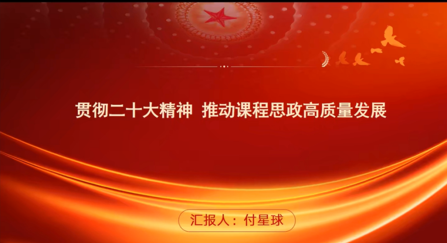 随后,由数理学院基础物理教研室党支部付星球老师对本次专题活动进行导学。首先,付老师强调,贯彻党的二十大精神,需要进一步增强课程思政建设的历史主动性。他指出,十三大以来党中央对教育事业高度重视,教育的基础性、先导性、全局性地位越发凸显,应结合未来高等教育发展的六项原则和六大变革方向,充分发挥高等教育在社会主义现代化强国建设中的支撑引领作用。其次,付老师阐述了深化思政课程建设,持续提升物理教学质量的重要意义,认为课程思政建设是全面提升物理课程育人、增进课程建设功效的新动能和新优势。同时,付老师介绍了具体的措施:一是全方位加强对于员工价值观塑造的教育、引导和熏陶;二是围绕提高人才自主培养质量目标,开辟物理课程思政建设的新领域、新赛道;三是全面提升教师的政治素养、思想品格、精神境界、育人能力。最后,付老师在总结中呼吁,要将课程思政当做事业来做,当做学术来做,不断为党和国家培养高质量的人才。