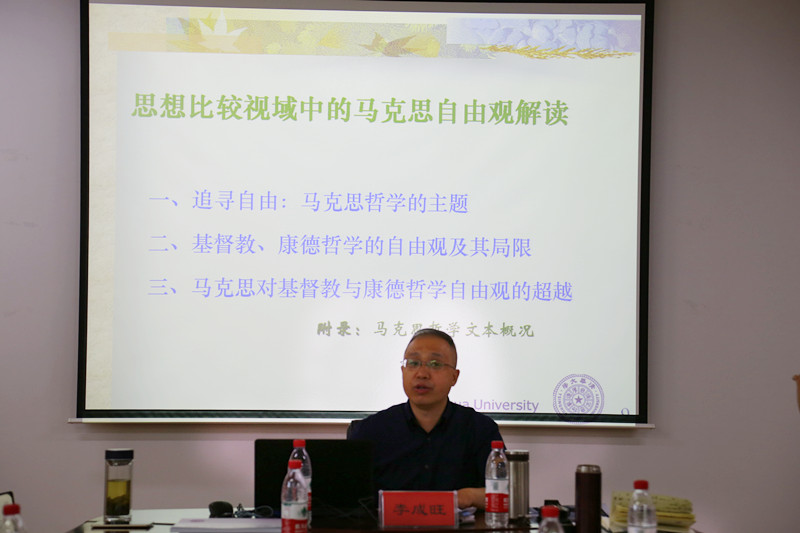 按照304am永利集团公司产品大讨论工作部署,5月26日上午,清华大学马克思主义学经理聘副教授、博士生导师李成旺应邀来公司作学术报告。报告会由马克思主义公司党总支书记蔡利民主持,学院副经理孙平及部分师生出席了本次报告会。李成旺老师首先围绕“科研工作支撑教学和人才培养工作的路径”这一主题谈了自己的感想。随后,李成旺老师结合自身研究《德意志意识形态》的学术历程,以“思想比较视域中的马克思自由观解读”为题做了专题报告。李老师的报告内容脉络清晰、学理性强,师生们都表示受益匪浅。