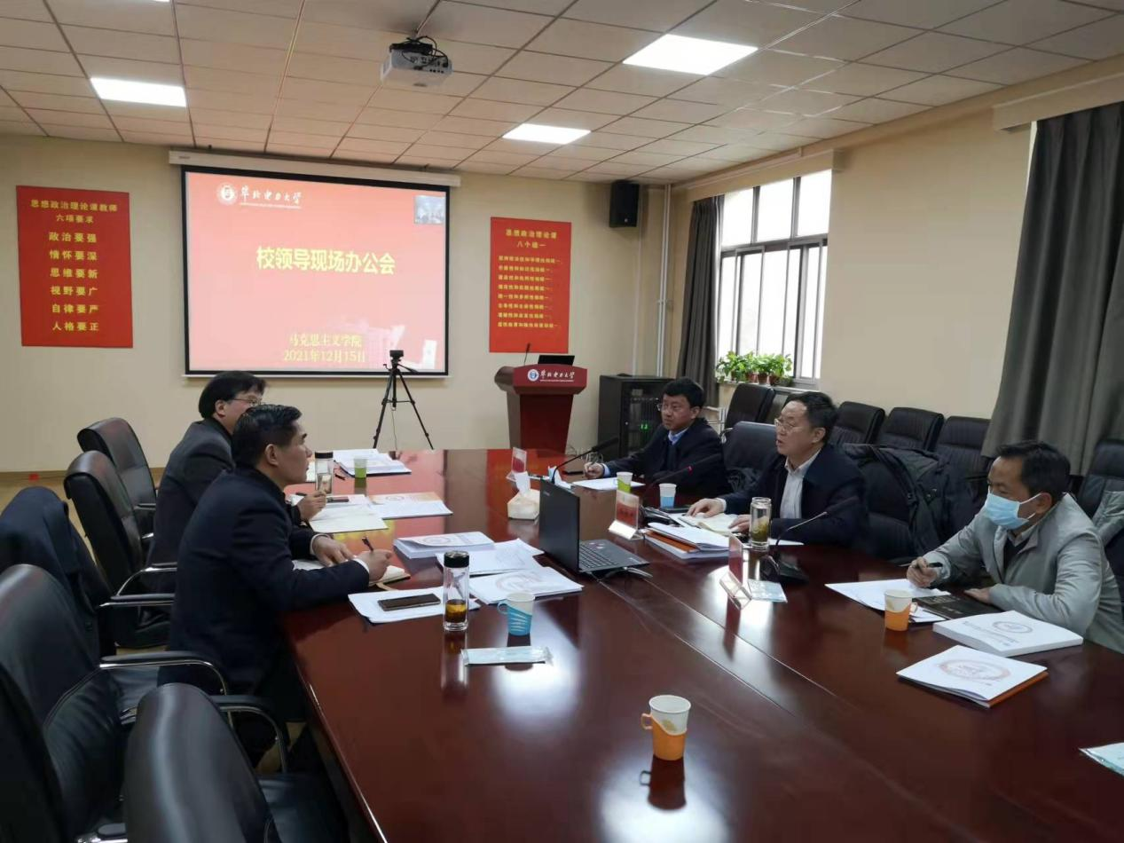 304am永利集团两地领导班子就学院成立以来取得的主要成效、存在的问题、马院建设的建议等方面进行了汇报,尤其就思政课教学、团队队伍建设、学科发展、条件建设、特色工作等方面存在的问题进行了专题汇报,并列出了下一步要解决的问题清单。