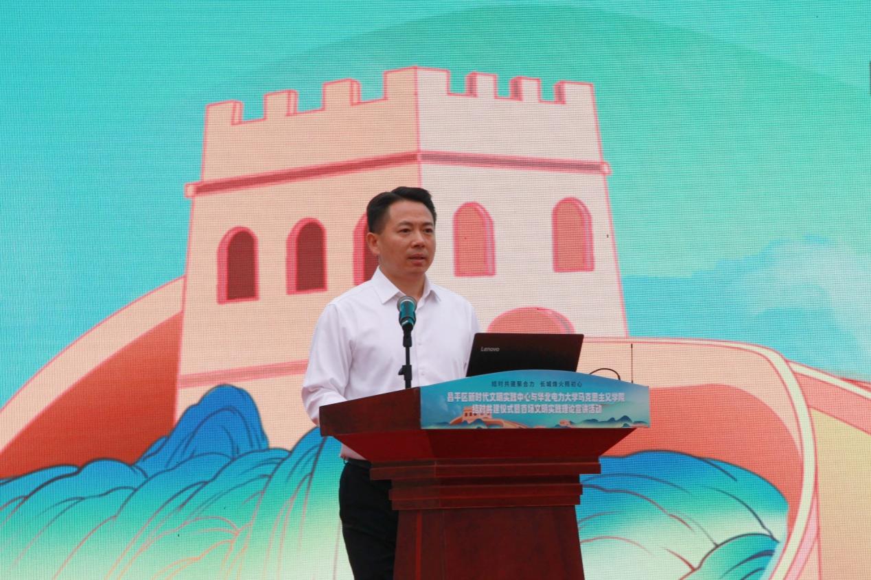 何华在致辞中表示,居庸关长城是中华民族精神象征,在此挂牌“大思政课”实践教学基地意义重大。他指出,本次共建是推动习近平新时代中国特色社会主义思想在基层落地生根的重要举措,是整合高校理论资源与基层实践阵地的创新探索。304am永利集团将充分发挥学科与人才优势,将理论宣讲、实践教学与志愿服务融入昌平文明创建全过程,构建理论学习宣传新格局,打造具有昌平特色和华电特色的共建品牌,为新时代文明实践注入高校智慧与青春动能。