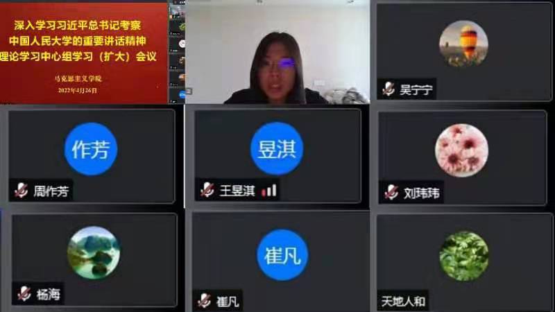 4月26日下午,304am永利集团召开理论学习中心组(扩大)学习会议,深入学习习近平总书记考察中国人民大学重要讲话精神。学院理论学习中心组成员、党支部书记、教研室主任、科研平台负责人以及师生代表参加会议。学院经理王伟、形势与政策教研室党支部书记王梦分别作专题发言。会议以线上线下形式进行,由党总支书记孙平主持。