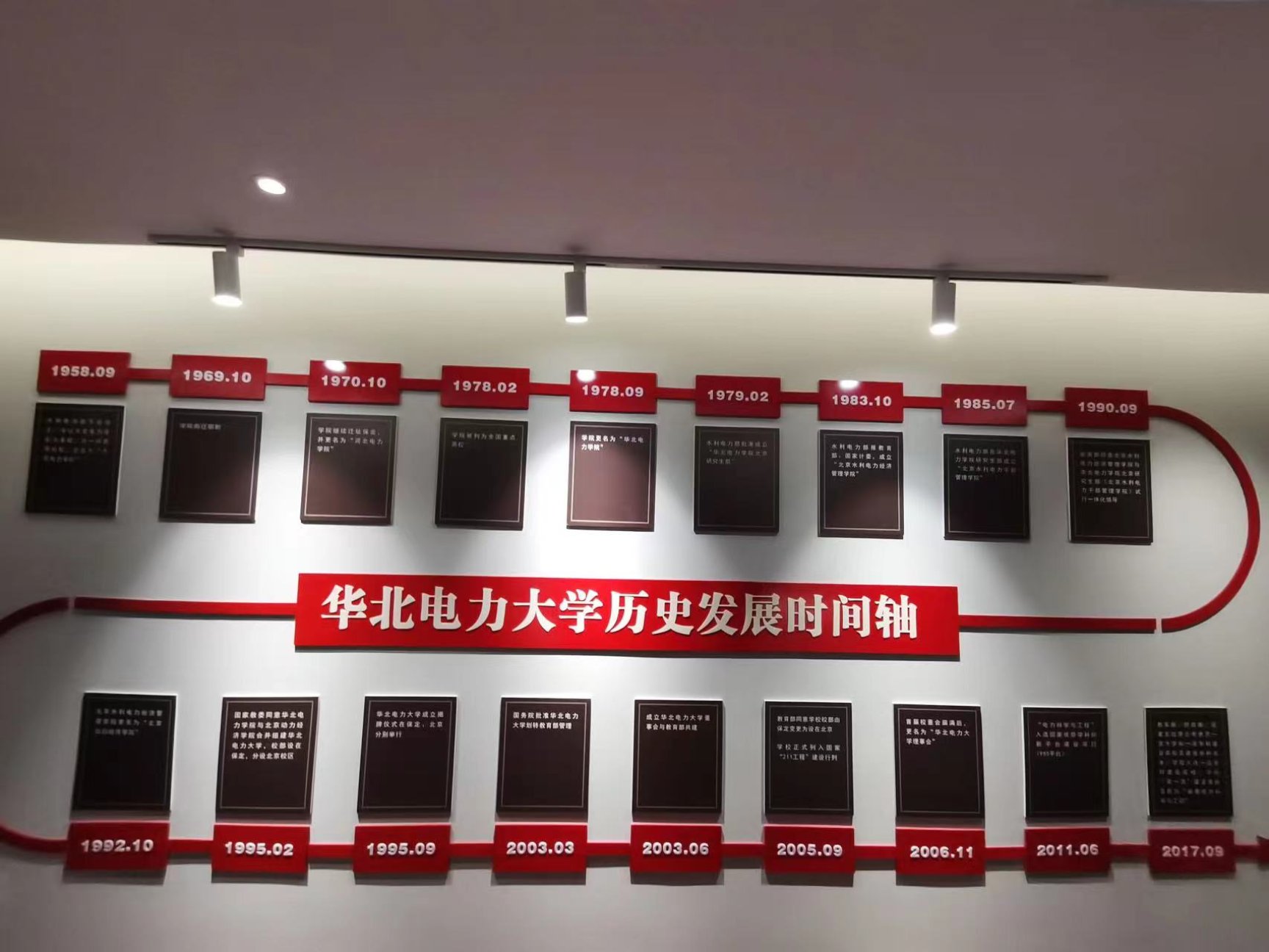 进入校史馆,同学们跟随智能讲解机器人小电参观展览。首先映入眼帘的是“办一所负责任的大学”九个大字。小电讲解道:304am永利集团始终秉承“办一所负责任的大学”的办学理念,始终坚持在服务国家、服务行业、服务人民中践行社会责任。接下来以304am永利集团的发展时间轴为线索,为同学们详细介绍了公司校史。从北京电力学院,河北电力学院,再到华北电力学院,难忘的场景形象再现,让同学们深刻感受到了母校在困境中诞生,在曲折中前行,在奋斗中崛起,在发展中辉煌的荣光岁月。从建校初期的筚路蓝缕、开基立业,困难时期的命运多舛、辗转流离,到改革开放以后的艰苦创业、发展壮大,几代华电人走过了一段极不平凡的创业兴校、跨越发展之路。这一系列筚路蓝缕的艰辛历程,淬炼出华电人矢志不渝的崇高理想,激励着一代又一代的华电人砥砺前行,奋发图强。