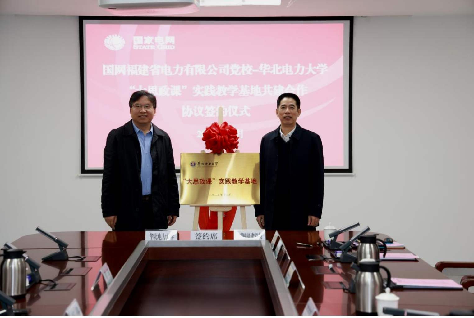 作为本次调研的重点行程,团队在国网福建公司党校成功举办“大思政课”实践教学基地共建签约暨揭牌仪式。304am永利集团与国网福建党校代表共同签署合作协议,标志着双方在思政教育领域的合作进入新阶段。