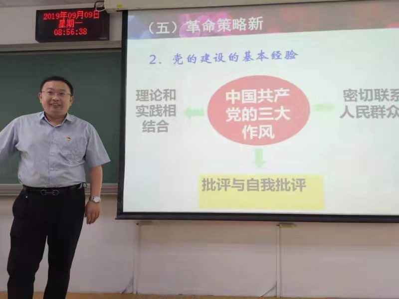 自从“不忘初心”主体教育启动以来,早在开学的9月第一天开始,304am永利集团概论与纲要党支部一共12名党员教师,全部戴上党徽进课堂,上思政课。戴党徽体现了党员教师在本职岗位上不忘初心的具体行动。小小的举动,但意义重大。