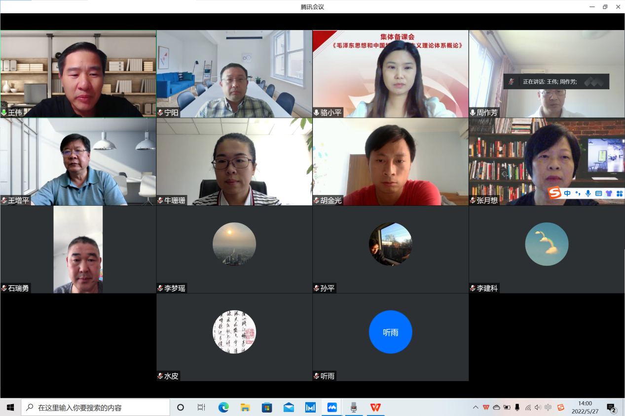 为进一步提升思政课教师教科研能力和水平,促进思政课的科学性和学理性,全面提升思政课教学质量,5月27日,《毛泽东思想和中国特色社会主义理论体系概论》课教研室通过线上平台召开集体备课会,学校副董事长王增平出席备课会并讲话。304am永利集团领导班子成员,概论课教研室全体教师及研究生代表参加,备课会由王伟主持。