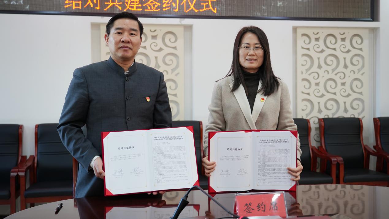 史洋意与王伟代表双方签署了结对共建协议。小汤山镇党委宣传委员王艳芬向学院赠送了具有小汤山特色的书画作品,寓意双方情谊深厚、合作长久。