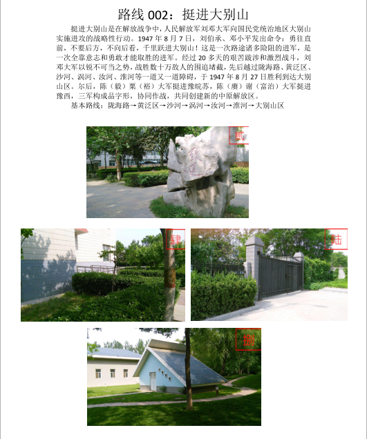 本次活动分为两个环节。第一个环节是定向运动比赛,每个参数队伍有一张独一无二的路线图。每张路线图有一个历史故事,故事主要是我党在革命时期和社会主义建设时期的光辉历史。同时每张路线图有四张华电校园的图片,参赛队根据照片确定寻找的地点,获取相应的卡片。