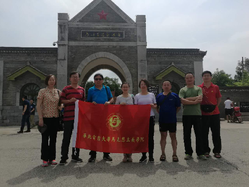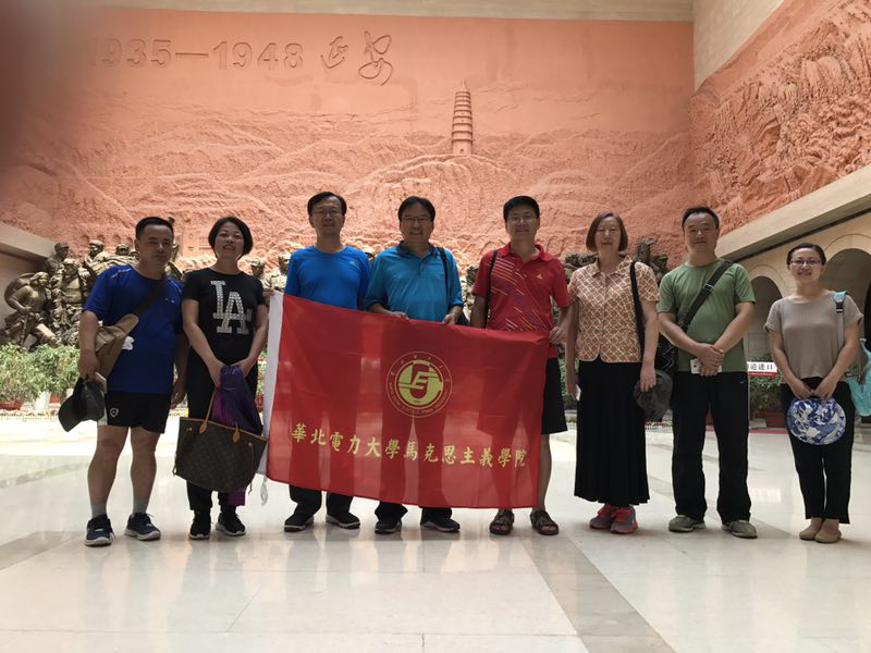 参观杨家岭革命旧址,并在七大会址大礼堂前合影。