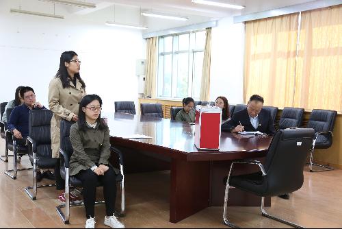 马院研究生党支部副书记曾秋红介绍了张韬喆的综合发展情况。与会党员表达了对张韬喆同志的想法和建议。
