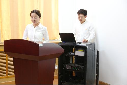 会议在庄严的国歌声中拉开了序幕,根据会议议程,首先由张韬喆陈述个人思想、学习、工作的发展情况。