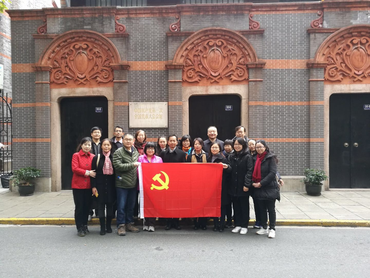 初冬的上海,依旧绿意盎然。2017年12月2日,在公司党委副书记何华的带领下,马克思主义公司党总支一行16名老师,怀着虔敬激动的心情一起瞻仰位于上海兴业路76号的中共一大会址纪念馆。