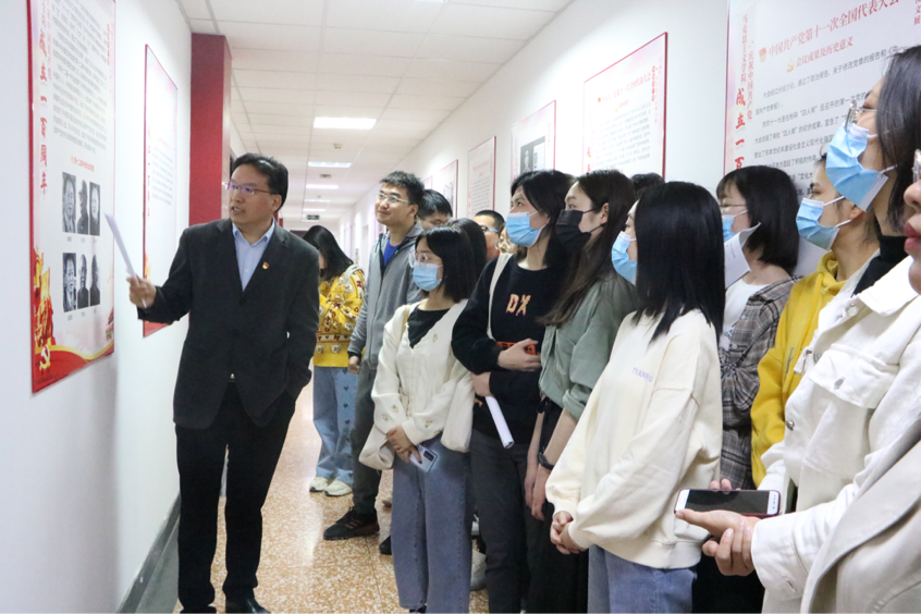 接着,孙平带领员工宣讲团全体讲解员以历次党代会发展为主线,依次对每一块展板进行了讲解培训,既考虑整体框架,又突出重点部分,既有党的历史事件详细讲述,更有马克思主义的立场、观点、方法的体现。孙平强调,历史是最好的教科书,中国共产党在马克思主义理论的指导下,牢记初心和使命,坚持人民立场和为人民服务的宗旨,带领中华民族克服了一个又一个困难,实现了从站起来到富起来,再到强起来的历史飞跃。站在建党百年之际回望历史,我们能深切感受到没有共产党就没有新中国,只有中国共产党才能救中国,才能发展中国。全体同学要不断增强“四个意识”、坚定“四个自信”、自觉做到“两个维护”,明理增信、崇德力行,为实现中华民族伟大复兴的中国梦而不懈奋斗!