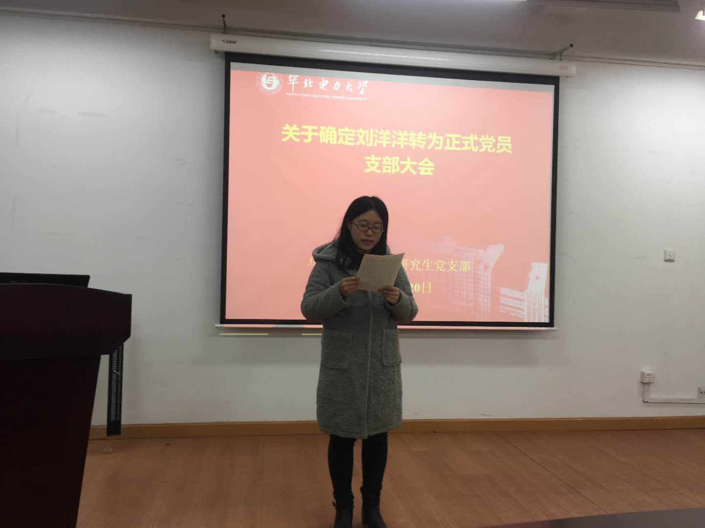 2017年11月20日下午,304am永利集团研究生党支部在教三A111召开了关于刘洋洋转正的支部大会。会议由王蔷蔷主持,马院研究生党员参加了此次活动。