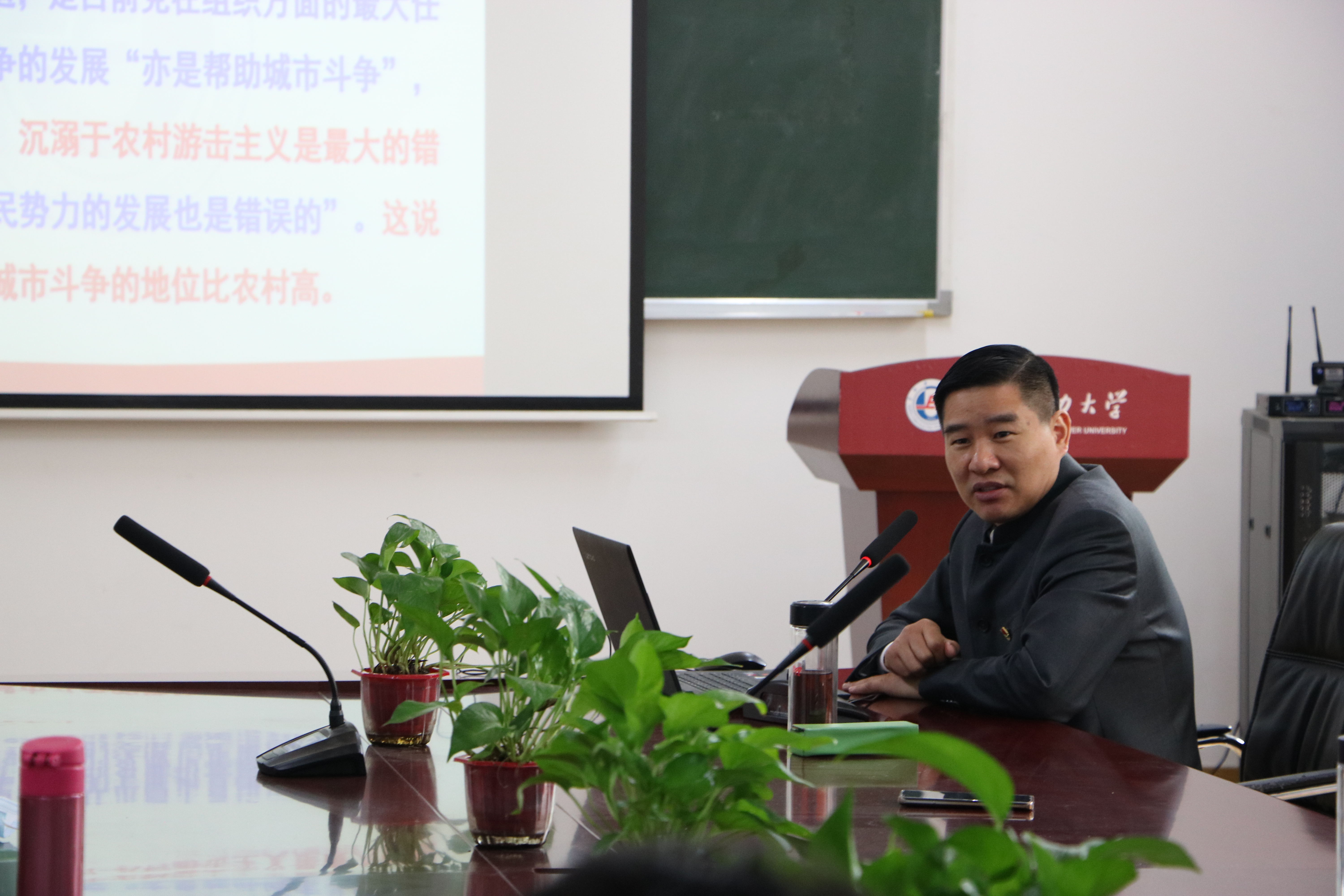 接着,王伟从中国共产党与土地革命战争、毛泽东和中国革命新道路的开辟、土地革命与中国革命新道路的启示三个方面,作“土地革命与中国革命新道路”专题报告。他指出从土地革命和中国革命新道路中,我们可以得出两点启示:一是必须深刻把握中国国情和社会结构,毛泽东就是深刻把握了中国国情和社会结构,才清晰了土地革命的地位、内容、途径和动力,为开辟正确的革命道路奠定基础;二是必须坚持理论建设和马克思主义中国化,毛泽东1928年至1930年, 先后写下了《中国的红色政权为什么能够存在? 》、《井冈山的斗争》、《星星之火, 可以燎原》等著作,科学地分析了中国的社会历史条件及革命特点。正是因为毛泽东将马克思主义理论和中国的现实实践相结合,我们才能取得革命的伟大胜利。