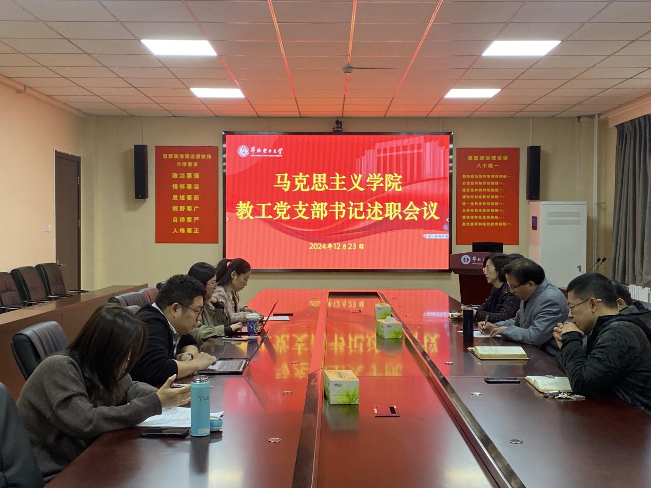 为进一步贯彻落实学校《关于开展2024年度教职工党支部书记述职评议考核工作的通知》的相关工作要求,马克思主义公司党总支于12月23日召开了2024年度教职工党支部书记述职会议。公司党总支书记孙平、领导班子成员、党总支委员等成员出席会议。此次会议旨在总结过去一年党支部工作,总结经验,发现问题,改进不足,提升支部党建工作质量。