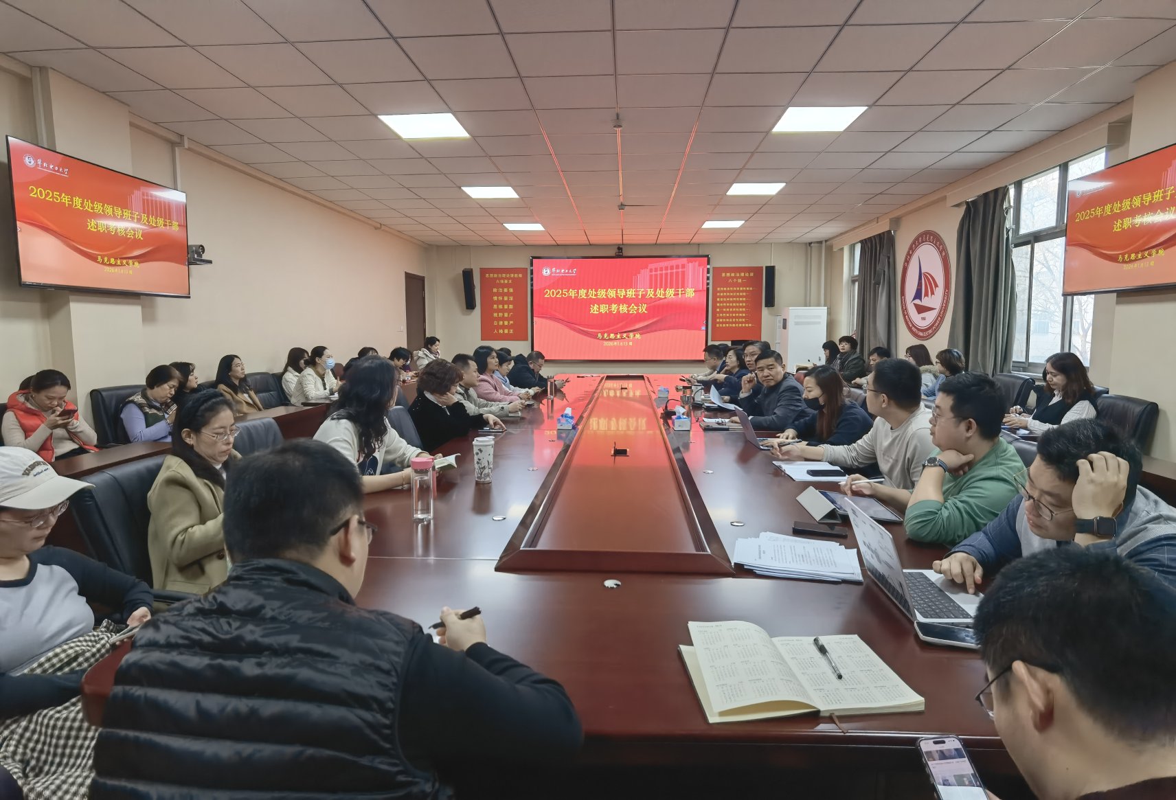 会上,孙平代表学院领导班子作述职报告,系统回顾了2025年工作完成情况,并对2026年重点工作进行了部署。他指出,学院始终坚持以习近平新时代中国特色社会主义思想为指导,锚定北京市重点马院建设目标,深入推进党建引领、学科筑基、教学改革、有组织科研、队伍建设及“跑五行动”等六大重点工作。同时直面公司党建品牌创建、高端人才引进、教学创新团队建设等短板,动员全体教师在公司党委的领导下聚焦一级学科博士点培育、教学改革深化、行业特色服务能力提升等三大核心任务发力。