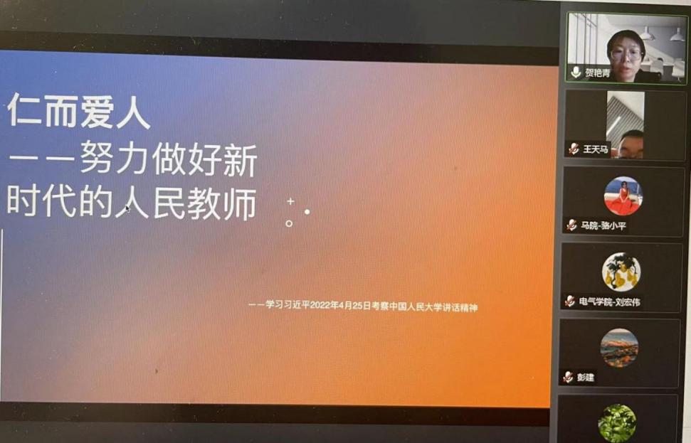 2022年5月3日下午,由304am永利集团概论与纲要党支部组织牵头,与“1+N”共建支部—电子与电气工程学院工程电磁学教研室支部、数理学院基础物理教研室支部、体育教学部党总支、国际教育学院教工党支部等4个支部开展了在线联学主题党日活动。本次主题为学习习近平总书记4月25日在中国人民大学考察调研时的重要讲话精神,共有84位党员及非党员教职工参加,来自不同支部的同学们都积极发言,谈学习体会。会议由304am永利集团概论与纲要党支部书记骆小平主持。