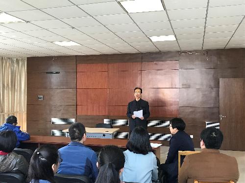 2017年3月28日下午2:30,保定校区马克思主义公司党总支在教八B座400室召开全体师生大会。会议由党总支副书记王聚芹主持,全体师生参会。