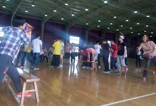 鼓足士气沙包掷准